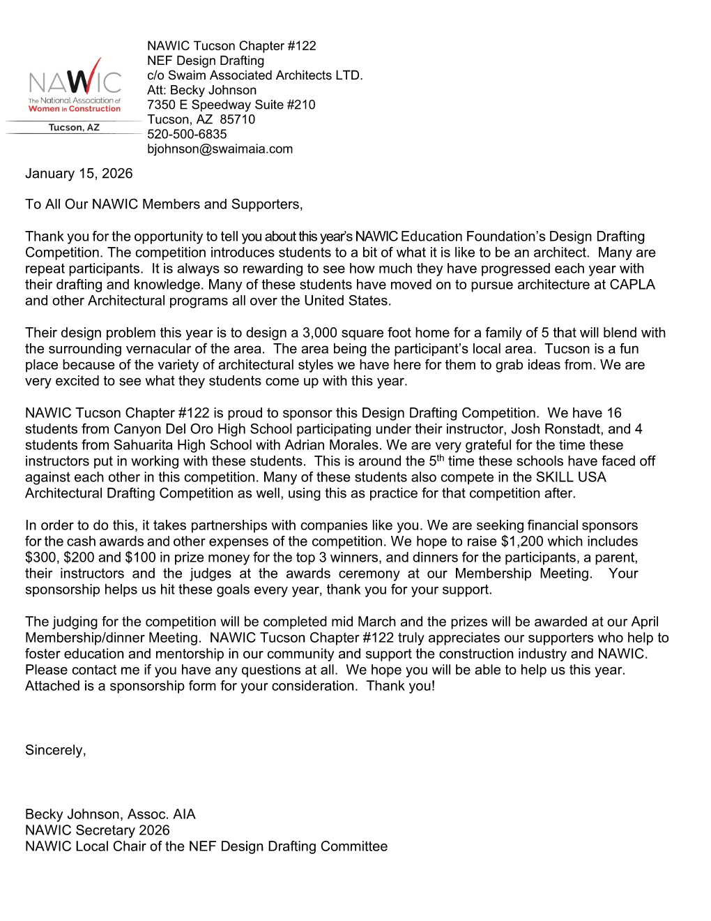 Entries are evaluated for detail, accuracy, and originality of work. The objectives of the contest are to introduce the student to the construction industry in a positive and challenging manner while fostering a sense of self-worth and building confidence.